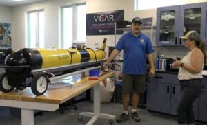 Cole explained that the gliders are modular in design, meaning they can come apart. Depending on how many sensors are used, the gliders’ length can vary. Modular pieces can be added or removed to measure different variables based on research needs. For example, an oxygen sensor can be added to gather data about the ocean’s oxygen levels.
