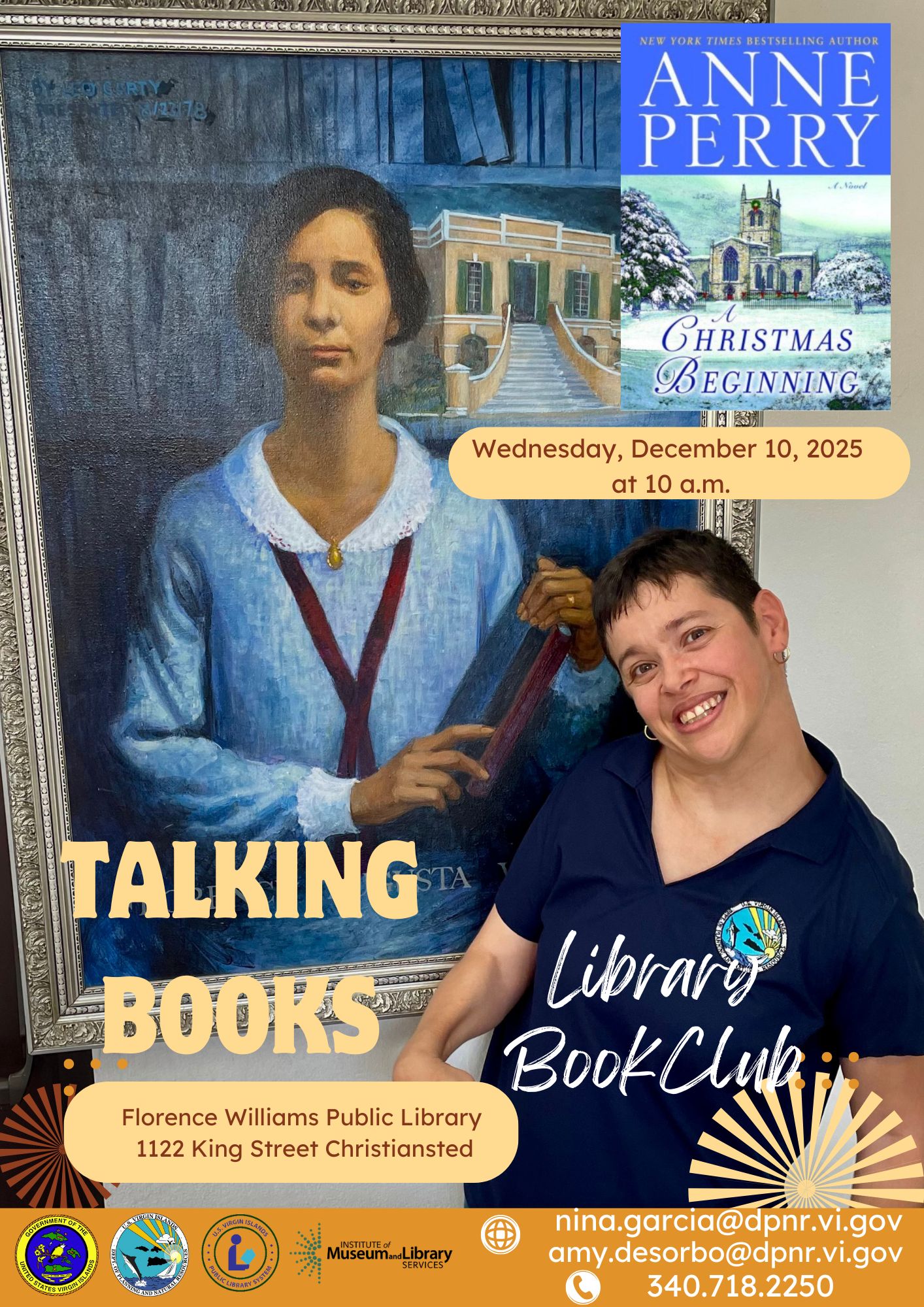Commissioner Jean-Pierre L. Oriol of the Department of Planning and Natural Resources (DPNR) is pleased to invite the public to the next meeting of the Talking Books Book Club, scheduled for Wednesday, December 10 at 10:00 a.m. The event will be held at the Regional Library for the Blind and Physically Challenged, now located inside the Florence Williams Library in Christiansted.