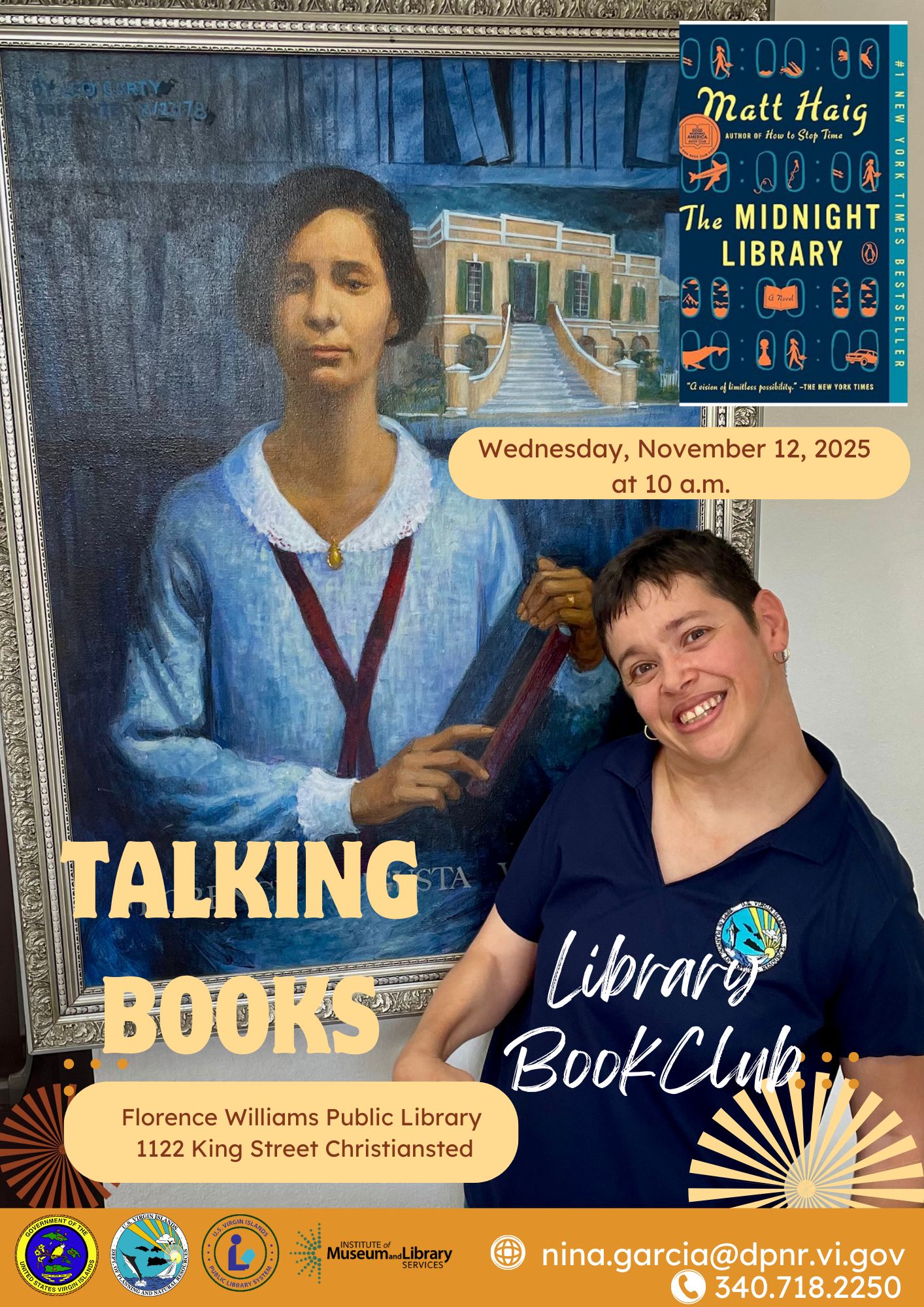 Commissioner Jean-Pierre L. Oriol of the Department of Planning and Natural Resources is pleased to announce the next session of the Talking Books Book Club, taking place on Wednesday, November 12 at 10:00 a.m. at the Regional Library for the Blind and Physically Challenged, now located within the Florence Williams Library in Christiansted.