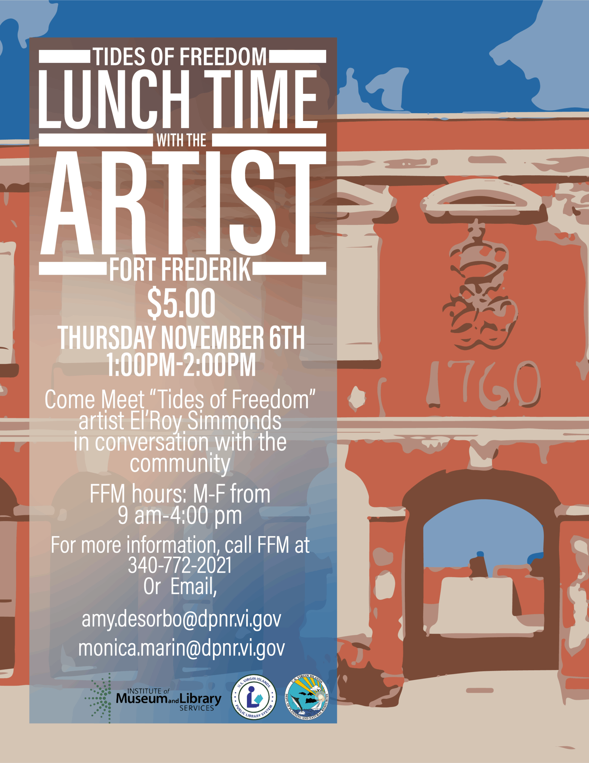 (DPNR) invites the public to attend the Division of Libraries, Archives and Museums’ (DLAM) ongoing artist talk series, “Lunchtime with the Artist,” with our upcoming event happening on Thursday, November 6th, from 1:00 to 2:00 PM at the Fort Frederik Museum.