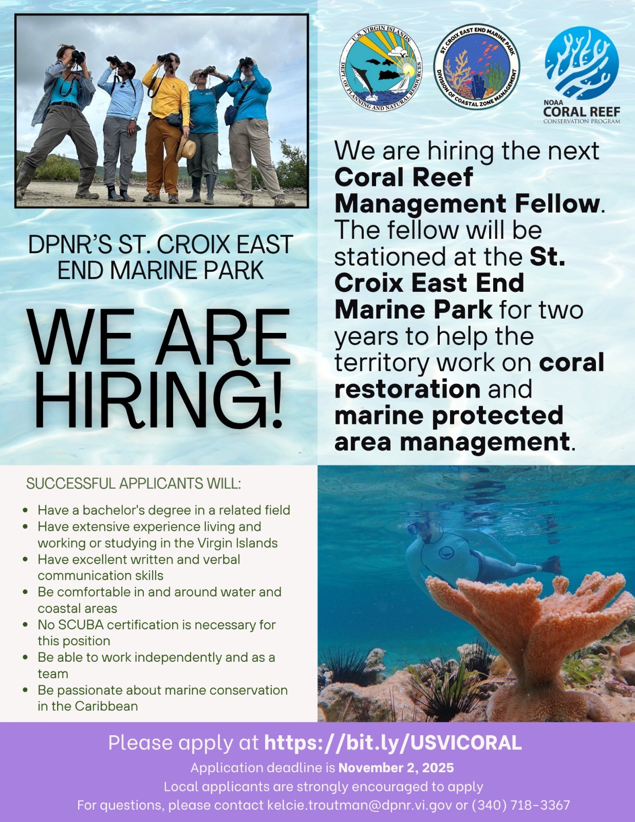 To apply and view the full position description, visit: https://bit.ly/USVICORAL