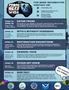 - April 18 (8:30am-1pm) Snorkel Tour of the National Park on Reef Surfari. Spots are reserved for VI residents only. Sign up at: https://bit.ly/crwsurfari